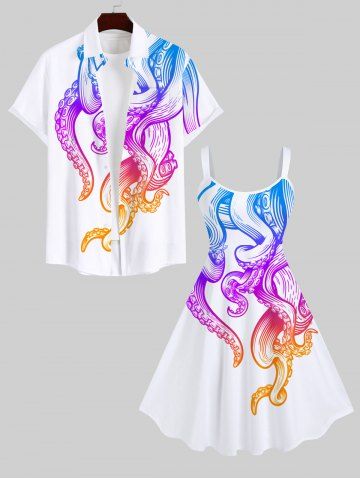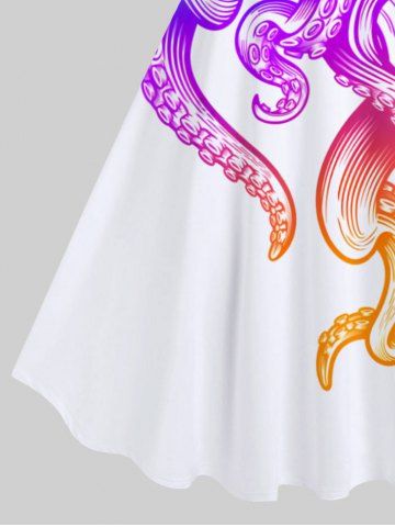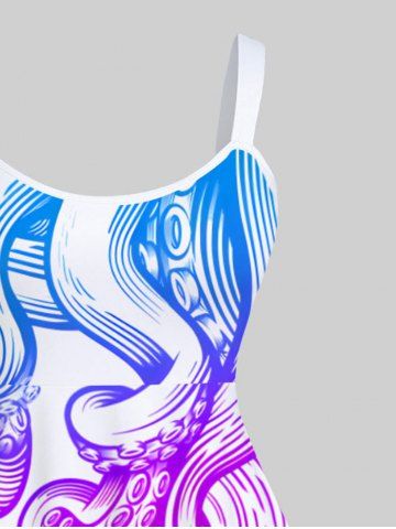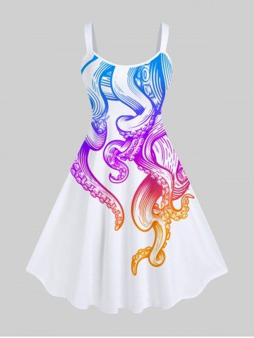 Plus Size Colorful Ombre Octopus Print Hawaii A Line Tank Dress - White - M