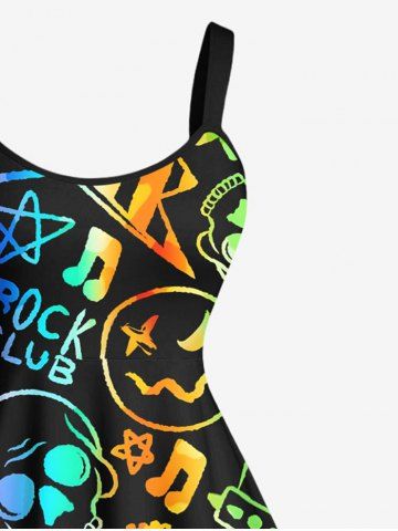 Plus Size Colorful Ombre Skull Guitar Star Letters Music Symbol Print Hawaii Rock and Roll A Line Tank Dress - Multi-a - S