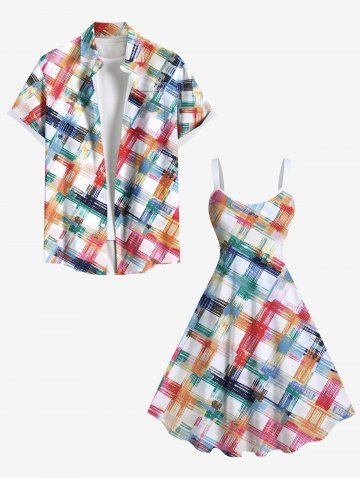 Plus Size Colorful Painting Geometric Plaid Print Hawaii B A Line Tank Dress - Multi-a - 1x