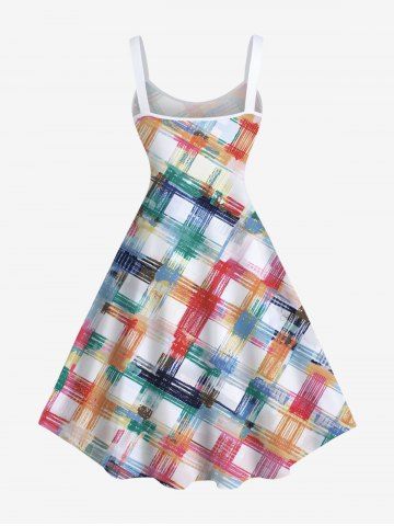 Plus Size Colorful Painting Geometric Plaid Print Hawaii B A Line Tank Dress - Multi-a - 6x