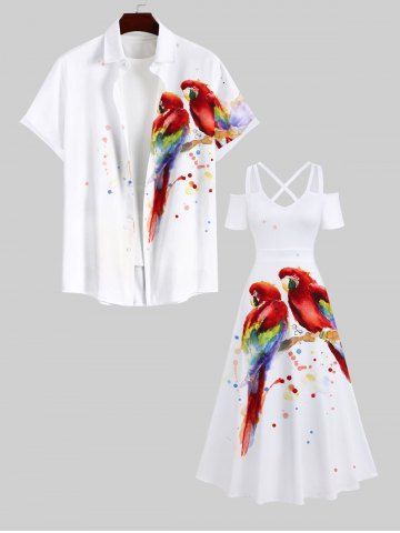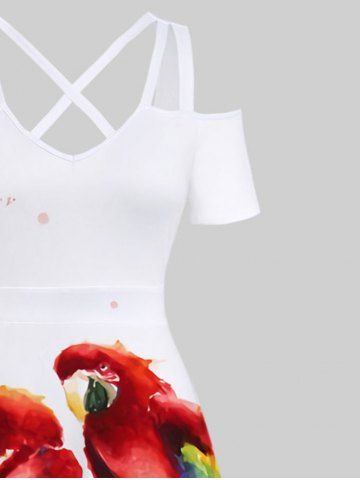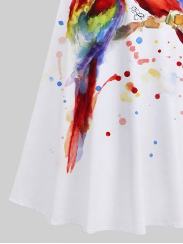 Graphic Dresses > Plus Size Colorful Parrot Oil Painting Splatter Printed Cold Shoulder Crisscross Hawaii Maxi Dress