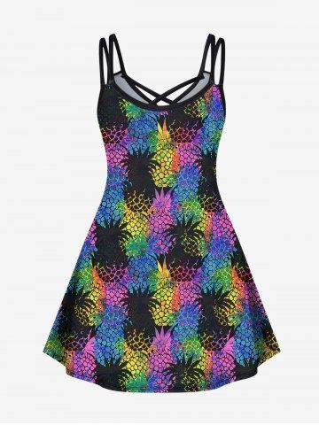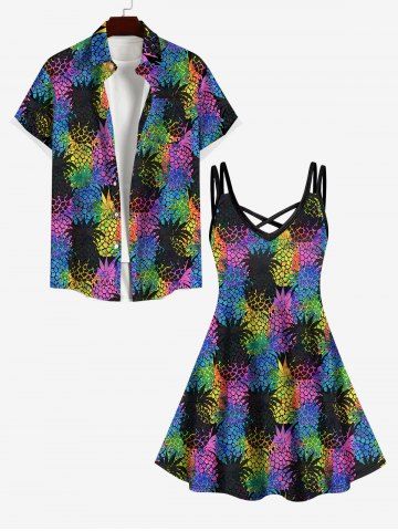 m*****r4Colorful Pineapple Colorblock Print Crisscross Dress and Button Shirt Plus Size Matching Hawaii Beach Outfit for CouplesColor: BLACKItems arrived as described. Good quality. Fit was a little bigger than expected but customer service was good to the fix the issue.
