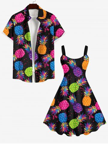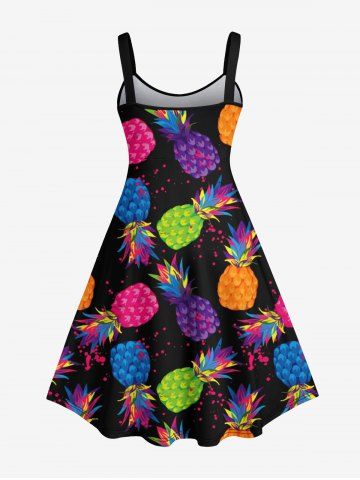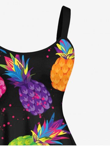 Plus Size Colorful Pineapple Paint Splatter Print Hawaii Tank Dress - Black - L