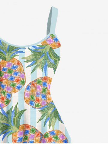 Plus Size Colorful Pineapple Striped Print Hawaii A Line Tank Dress - Green - S
