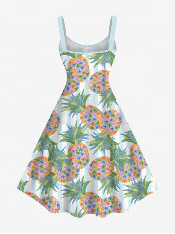 Graphic Dresses > Plus Size Colorful Pineapple Striped Print Hawaii A Line Tank Dress