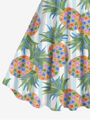 Graphic Dresses > Plus Size Colorful Pineapple Striped Print Hawaii A Line Tank Dress