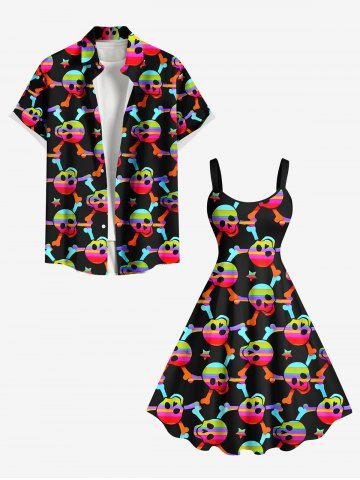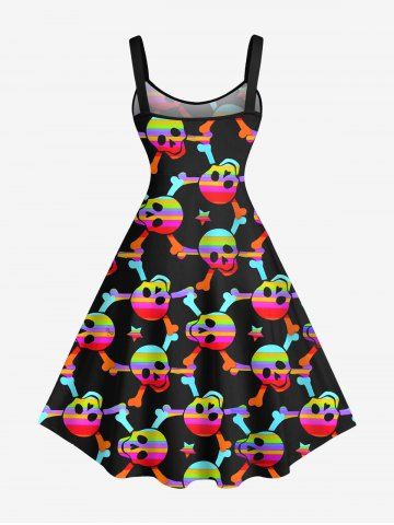 Plus Size Colorful Skull Bone Stars Print Hawaii A Line Tank Dress - Black - 6x