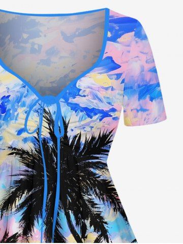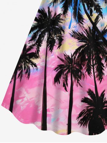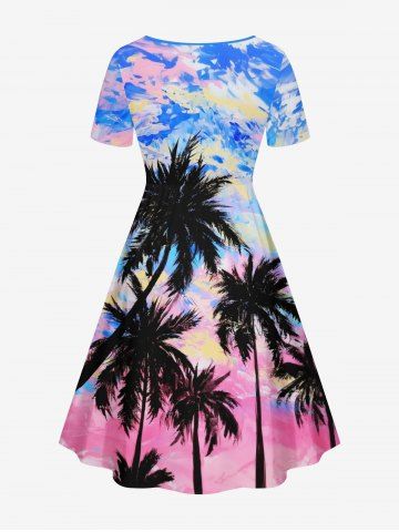 Plus Size Colorful Sky Coconut Tree Oil Painting Print Cinched Hawaii Dress - Multi-a - 6x