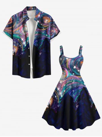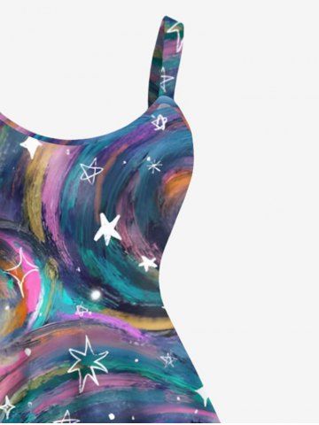 Graphic Dresses > Plus Size Colorful Spiral Galaxy Star Print Hawaii A Line Tank Dress