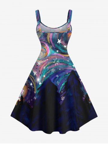 Plus Size Colorful Spiral Galaxy Star Print Hawaii A Line Tank Dress - Midnight Blue - 6x