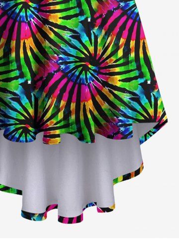 Graphic Dresses > Plus Size Colorful Spiral Tie Dye Striped Print High Low Asymmetric Hawaii A Line Cami Dress