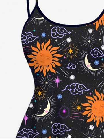 Plus Size Colorful Sun Moon Star Galaxy Cloud Print High Low Asymmetric A Line Backless Dress - Black - 5x