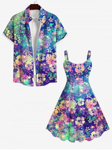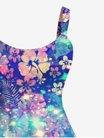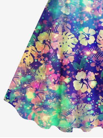 Plus Size Colorful Tropical Leaf Hibiscus Flower Galaxy Glitter 3D Print Hawaii Tank Dress - Multi-a - 1x