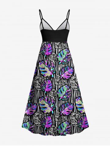 Graphic Dresses > Plus Size Colorful Tropical Leaves Striped Background Print Hawaii Surplice A Line Cami Dress