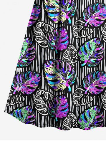 Plus Size Colorful Tropical Leaves Striped Background Print Hawaii Surplice A Line Cami Dress - Black - L