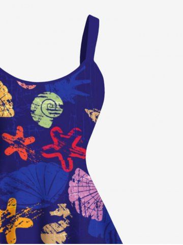 Plus Size Conch Seahorse Starfish Shell Paint Print Hawaii Ombre A Line Tank Dress - Blue - M