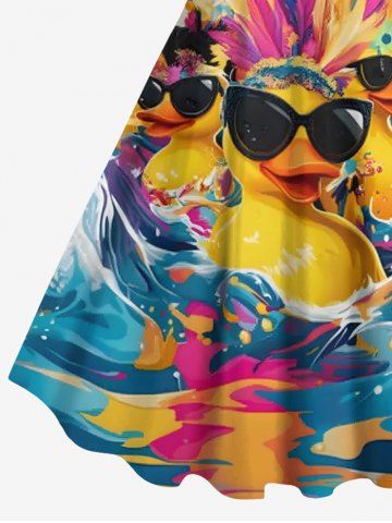 Plus Size Cool Duck Feather Sea Waves Print Hawaii A Line Tank Dress - Deep Yellow - 1x