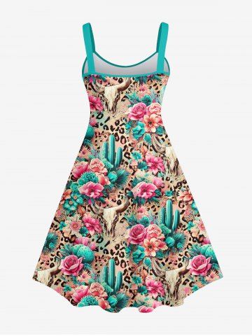 Graphic Dresses > Plus Size Cow Head Cactus Flower Leopard Ethnic Graphic Print Backless Hawaii A Line Tank Dress