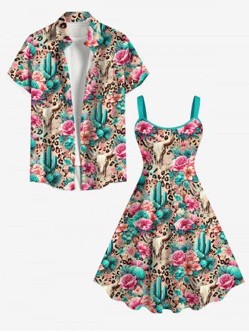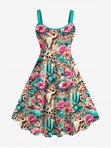 Graphic Dresses > Plus Size Cow Head Cactus Flower Leopard Ethnic Graphic Print Backless Hawaii A Line Tank Dress