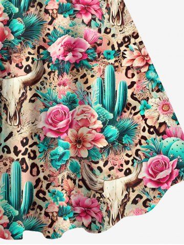 Plus Size Cow Head Cactus Flower Leopard Ethnic Graphic Print Backless Hawaii A Line Tank Dress - Multi-a - 6x