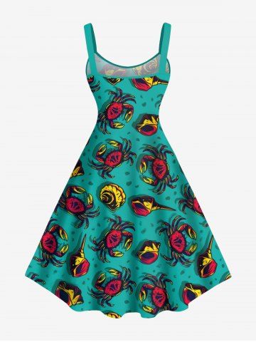 Plus Size Crab Conch Shell Print Hawaii Sea Creatures A Line Dress - Green - S