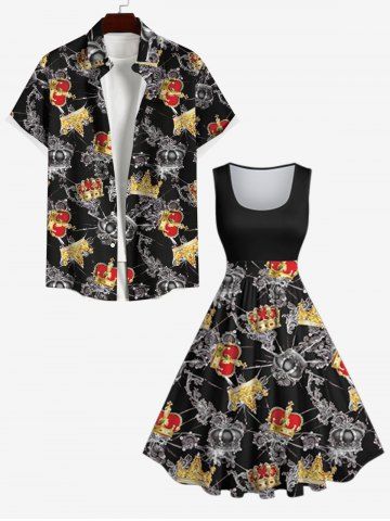 Plus Size Cracked Ice Crown Print Vintage 1950s Swing A Line Dress - Black - 5x