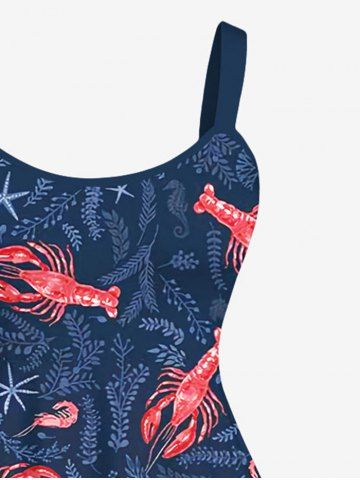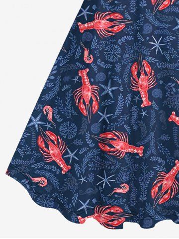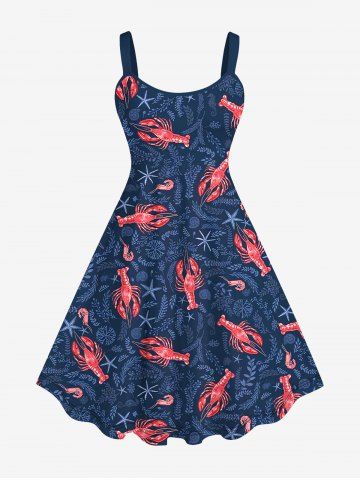 Graphic Dresses > Plus Size Crayfish Starfish Wheat Head Print Hawaii Sea Creatures Backless A Line Tank Dress