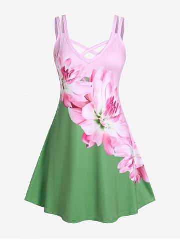 Graphic Dresses > Plus Size Crisscross Floral Print Sundress