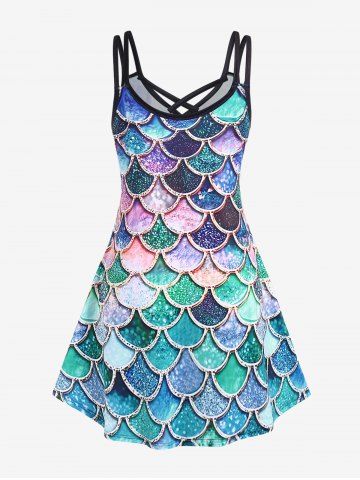 k*****h5Plus Size Crisscross Mermaid Fish Scale Print A Line DressColor: DEEP GREEN Size: 4X | US 26-28This dress is just fun! Not only do I really look like a mermaid in it thanks to the careful layered texturing of the dye, but it is incredibly cool and comfortable. Today I was the only comfortable person in my whole yoga class! People asked me where I got this one-of-a-kind dress, and I smiled and said, Rosegal!