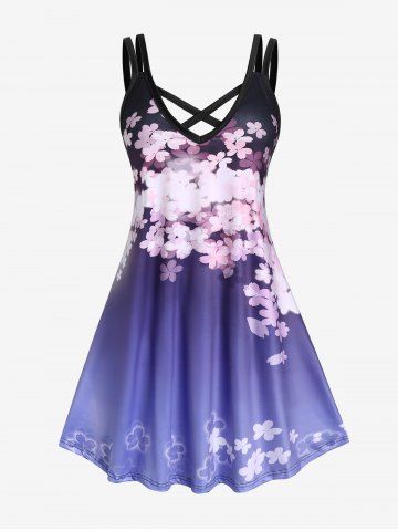Plus Size Crisscross Ombre Floral Print Sundress - Light Purple - S | Us 8