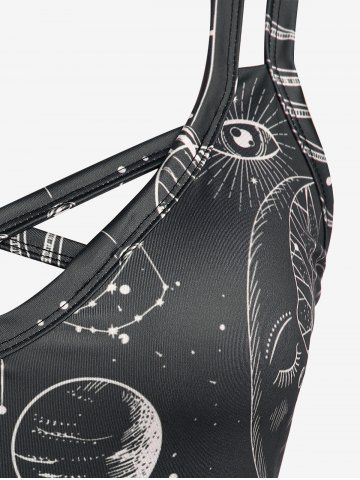 Plus Size Crisscross Sun Moon Print Dress - Black - 1x | Us 14-16