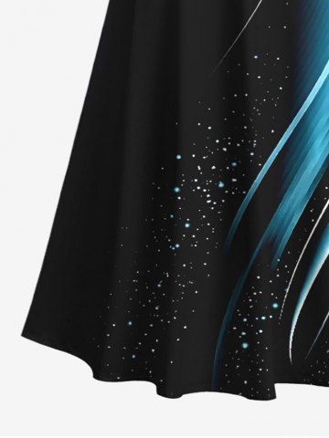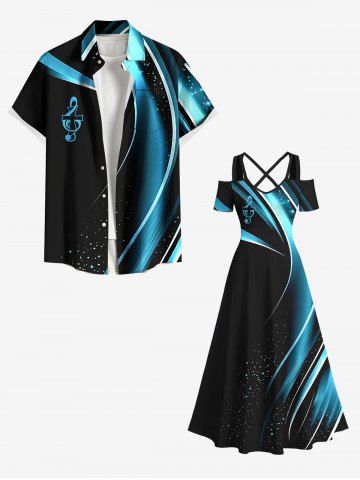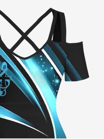 Plus Size Cross Musical Notes Galaxy Light Beam Print Cold Shoulder Crisscross Hawaii Maxi Dress - Black - 2x