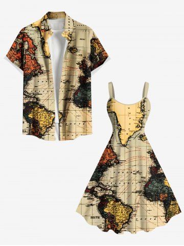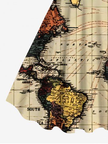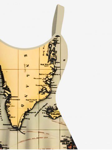 Plus Size Cruise Map Print Hawaii Tank Dress - Light Coffee - M