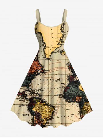 Plus Size Cruise Map Print Hawaii Tank Dress - Light Coffee - 3x