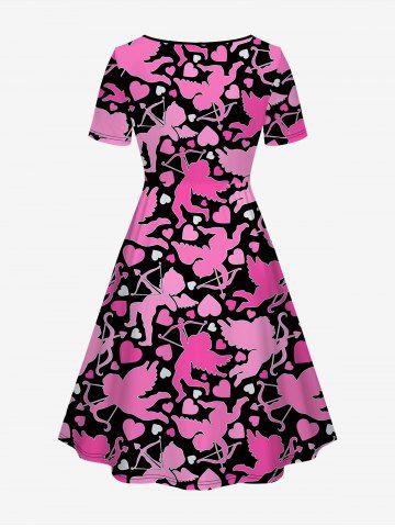 Graphic Dresses > Plus Size Cupid Heart Print Valentines Cinched A Line Short Sleeve Dress