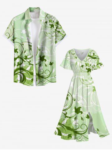 Plus Size Curve Branch Leaves Print Hawaii Ombre Split Pocket A Line Midi Dress - Green - Xs