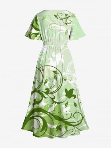 Plus Size Curve Branch Leaves Print Hawaii Ombre Split Pocket A Line Midi Dress - Green - 2x