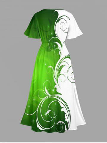 Plus Size Curve Branch Print St. Patrick's Day Hawaii Split Pocket A Line Midi Dress - Green - Xs