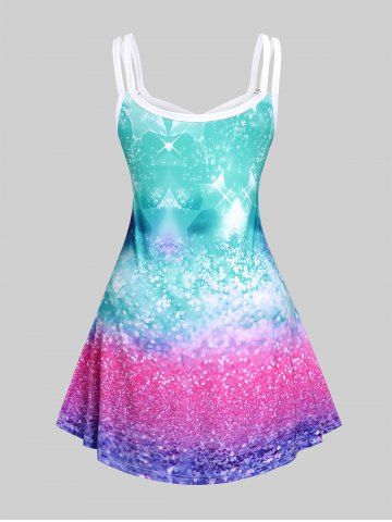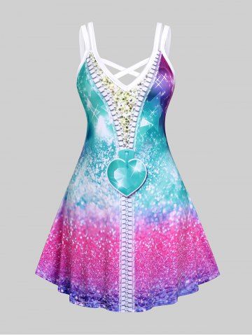 Plus Size & Curve Crisscross 3D Print Mini Sundress - Multi - M | Us 10