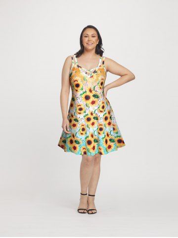 m*****e5Color: YELLOW Size: 3X | US 22-24The perfect spring time dress! Soo colourful and fun.. love the fit of it too, very stretchy and comfortable.