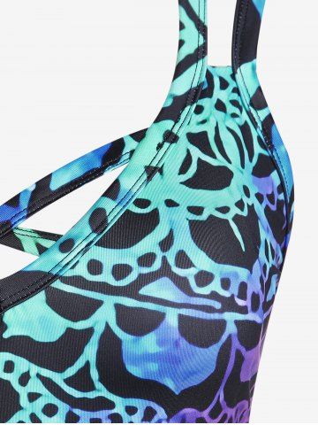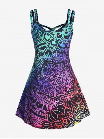 Graphic Dresses > Plus Size & Curve Ethnic Printed Colorblock Crisscross A Line Sleeveless Dress
