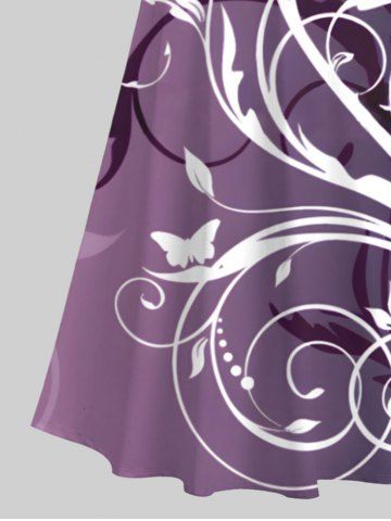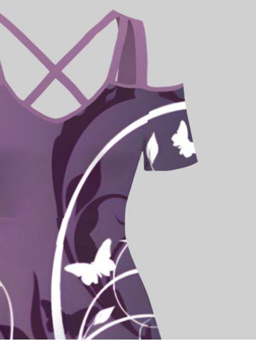 Plus Size Curve Floral Butterfly Print Hawaii Ombre Crisscross A Line Maxi Dress - Purple - Xs