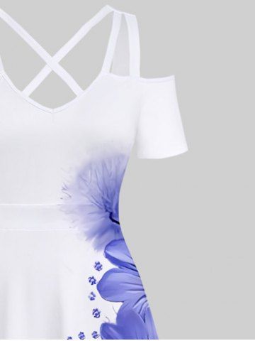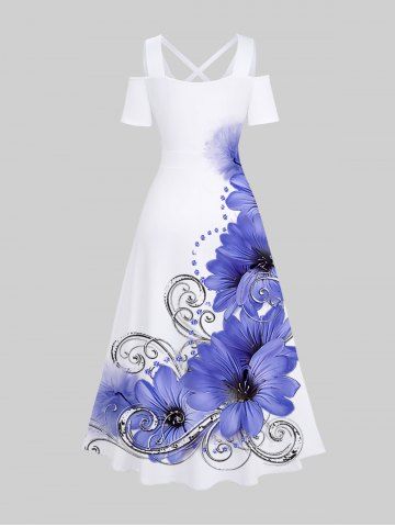 Plus Size Curve Floral Print Hawaii Crisscross A Line Maxi Dress - White - 3x