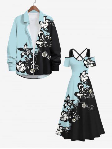 Graphic Dresses > Plus Size Curve Flower Butterfly Colorblock Print Hawaii Crisscross A Line Maxi Dress