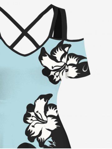 Graphic Dresses > Plus Size Curve Flower Butterfly Colorblock Print Hawaii Crisscross A Line Maxi Dress