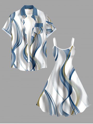 Plus Size Curve Ligh Beam Print Hawaii Tank Dress - Blue Gray - 4x