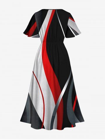Plus Size Curve Light Beam Colorblock Print Hawaii Split A Line Midi Dress - Black - 5x