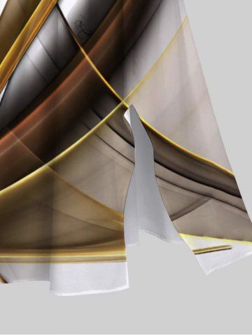 Plus Size Curve Light Beam Ombre Colorblock Print Split Hawaii Midi Dress - White - Xs