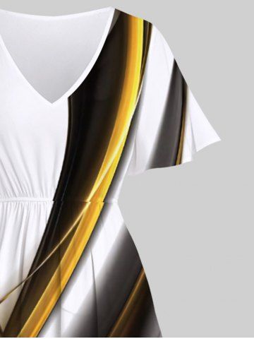 Plus Size Curve Light Beam Ombre Colorblock Print Split Hawaii Midi Dress - White - 2x