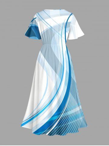Plus Size Curve Light Beam Print Split Midi Dress - Denim Blue - M